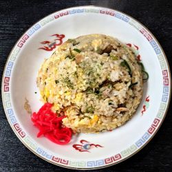 焼肉をたらふく食らい、〆はいつもの納豆チャーハン680円。混雑していたこともあって、やや時間を要して着皿しました。